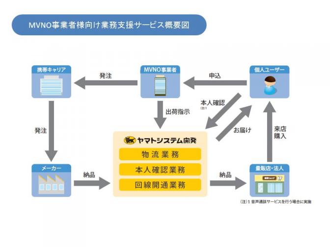 | ヤマトホールディングス傘下のヤマトシステム開発株式会社(本社:東京都江東区、代表取締役社長:星野芳彦、以下YSD)は、MVNO事業者様※1がエンドユーザー様から通信販売もしくは量販店を通じて受注したSIM※2やスマートフォンについて、その設定作業から出荷まで一連の作業を受託する「MVNO事業者様向け業務支援サービス」を展開してきましたが、この度、MVNO事業者様が音声通話サービスをエンドユーザー様へ提供するために必要となる本人確認業務を代行する機能を追加し、10月より本格稼働します。 ※1 MVNO(Mobile Virtual Network Operator)事業者: 仮想移動体通信事業者。携帯電話やPHSなどの物理的な通信回線網を自社では持たないで、実際に保有する他の事業者から借りて自社ブランドにて通信サービスを提供する事業者のこと。 ※2 SIM(Subscriber Identity Module): 携帯電話に使われている電話番号を特定するための固有のID番号が記録されたICカード。 |